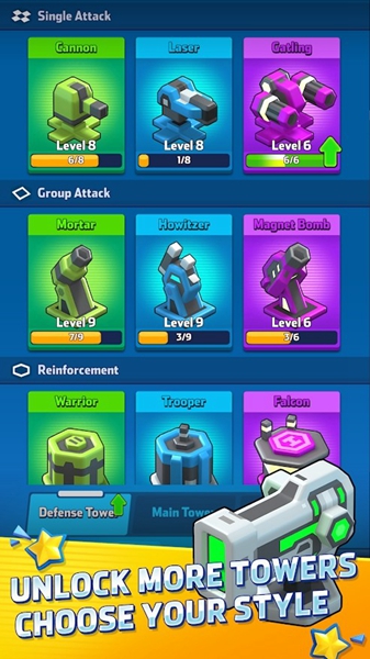最强巨塔是一款集策略性与娱乐性于一体的塔防手游,采用独特的卡通风格设计,为玩家带来紧张而刺激的游戏体验。玩家可以在游戏中培养个性化士兵、构建炮塔防御体系,并在多样化地图上与其他玩家竞技。游戏核心在于精准布局战术,利用对手的弱点实施攻击策略,确保自身巨塔的安全。