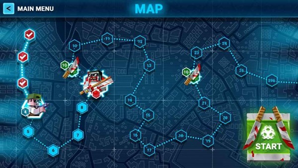 本作采用3D方块像素风格的末日僵尸生存射击模式,玩家在病毒肆虐的城市中猎杀僵尸,并通过购买强大武器来提升自身装备。