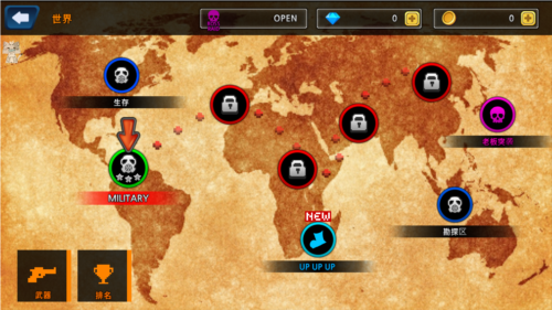 4、游戏采用全球地图关卡模式,玩家从第一个开放区域开始挑战。