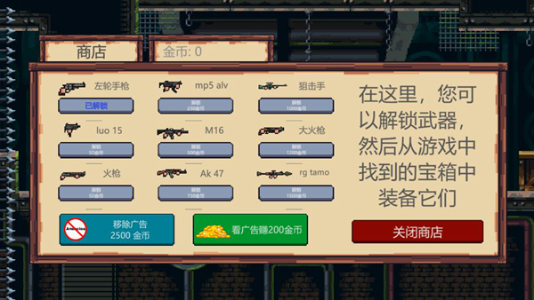 鼠鼠向前冲是一款横版射击冒险游戏,玩家在游戏中扮演小老鼠角色,配备武器进行探险与战斗。在推进过程中,玩家需消灭敌对单位,搜集宝箱以获取金币,进而购买更高效的装备,增强探险过程中的战斗力。游戏包含多个挑战性关卡以及待解锁的多样化武器。